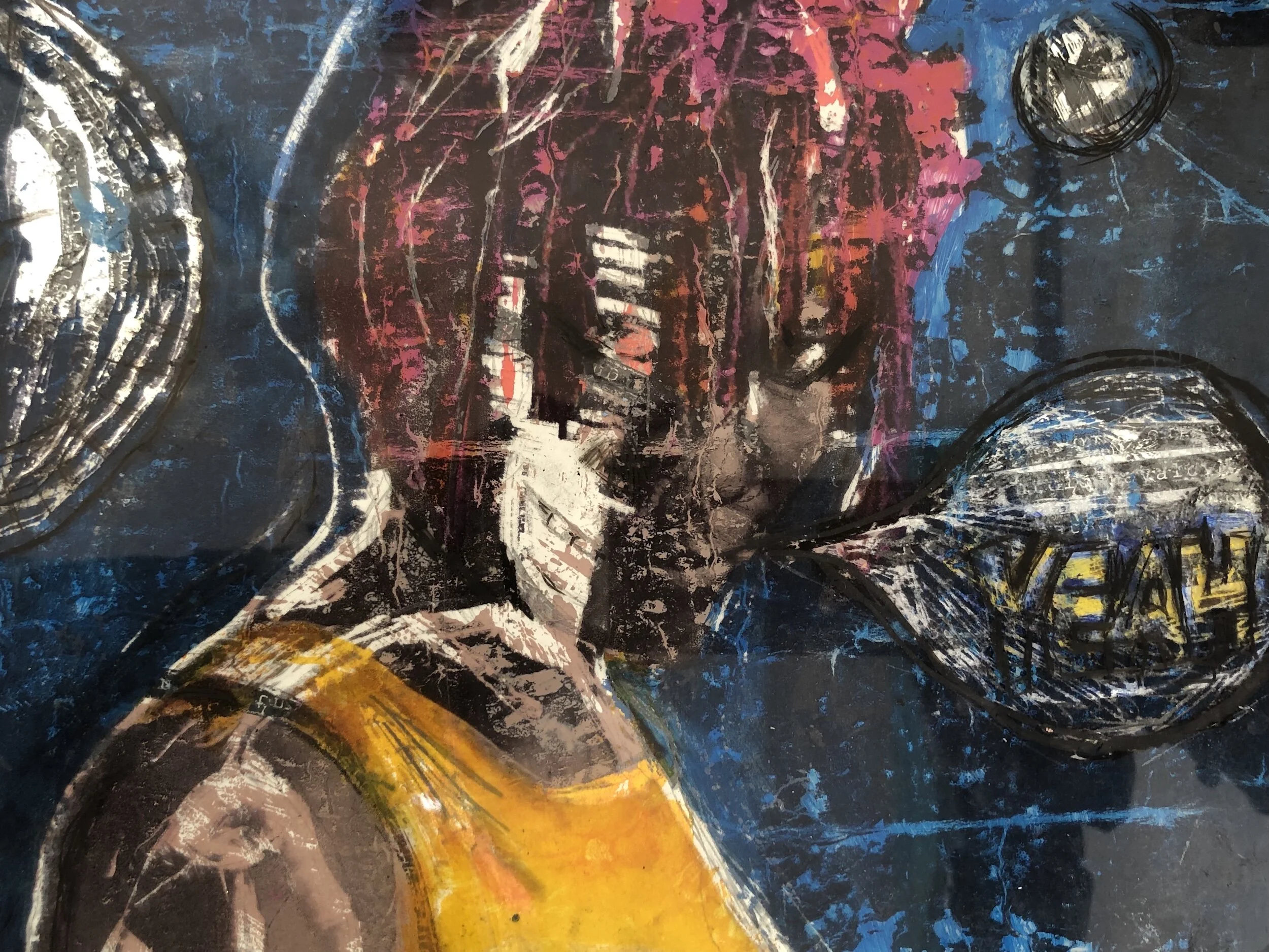 When beginning a painting or drawing I typically start with the canvas oriented in one direction then turn it 90-degrees clockwise continuing to add to the composition until the image is complete. The discoveries I make while playing inside this constantly shifting perspective add depth and motion to the works.